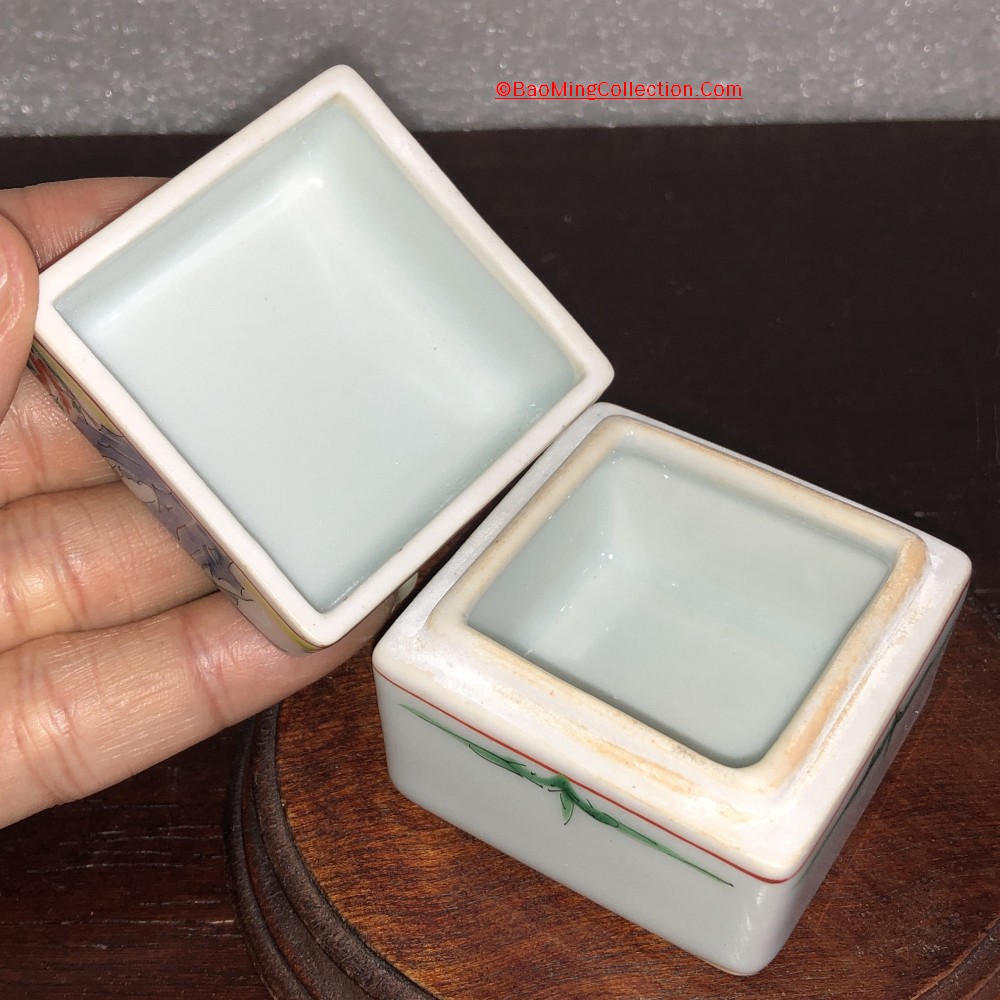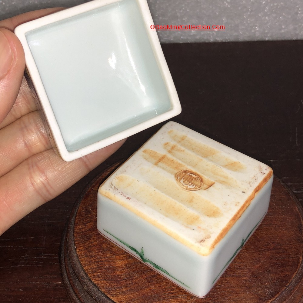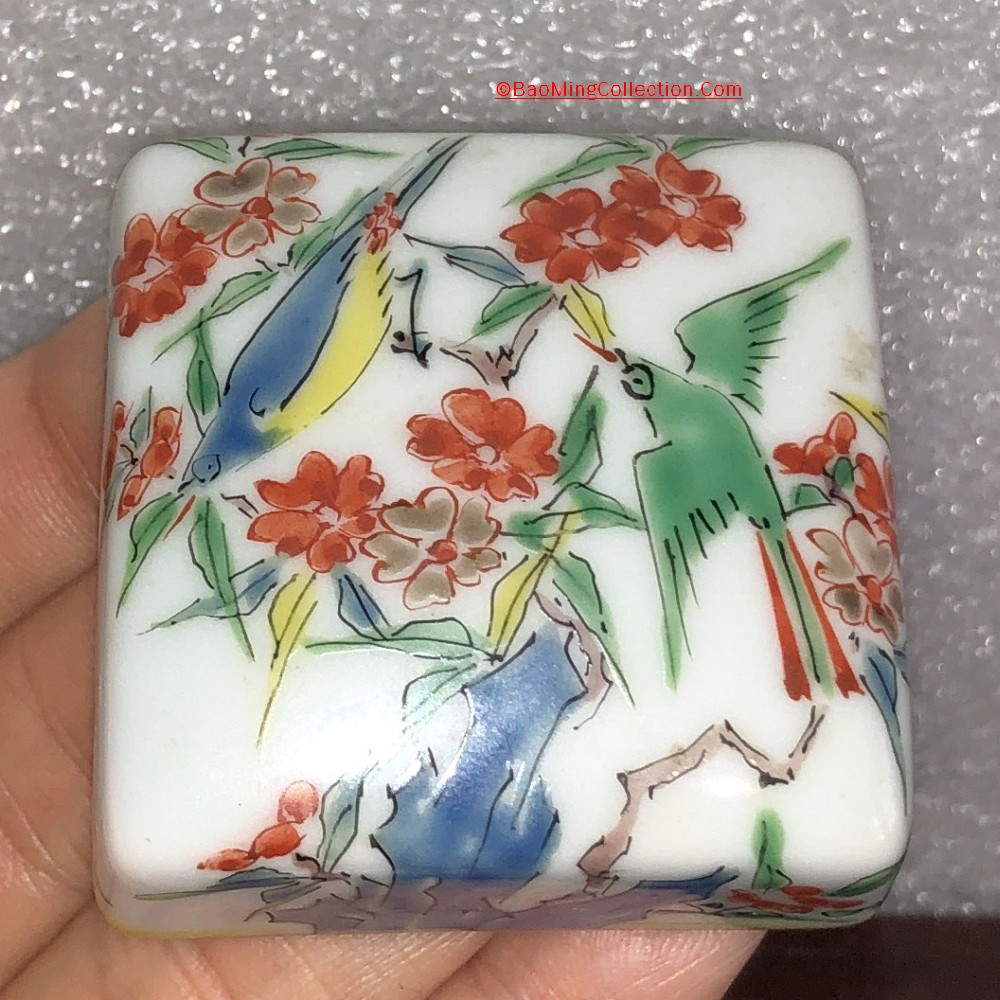 A very fine milky white porcelain Kogo incense box from Kakiemon kiln with stamped mark.